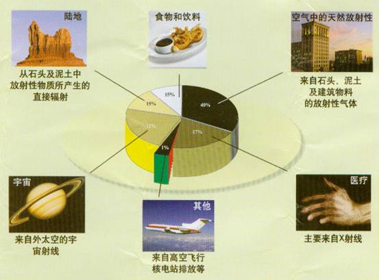 尽管100多年前人们才发现放射性,但放射性从来就存在于我们的生活中。放射性可以说无时不有,无处不在,我们吃的食物、喝的水、住的房屋、用的物品、周围的天空大地、山川草木乃至人体本身都含有一定的放射性。